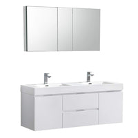 Fresca Valencia 60 Inch Glossy White Wall Hung Double Sink Modern Wood Bathroom Vanity And Medicine Cabinet - Faucet Sold Separa