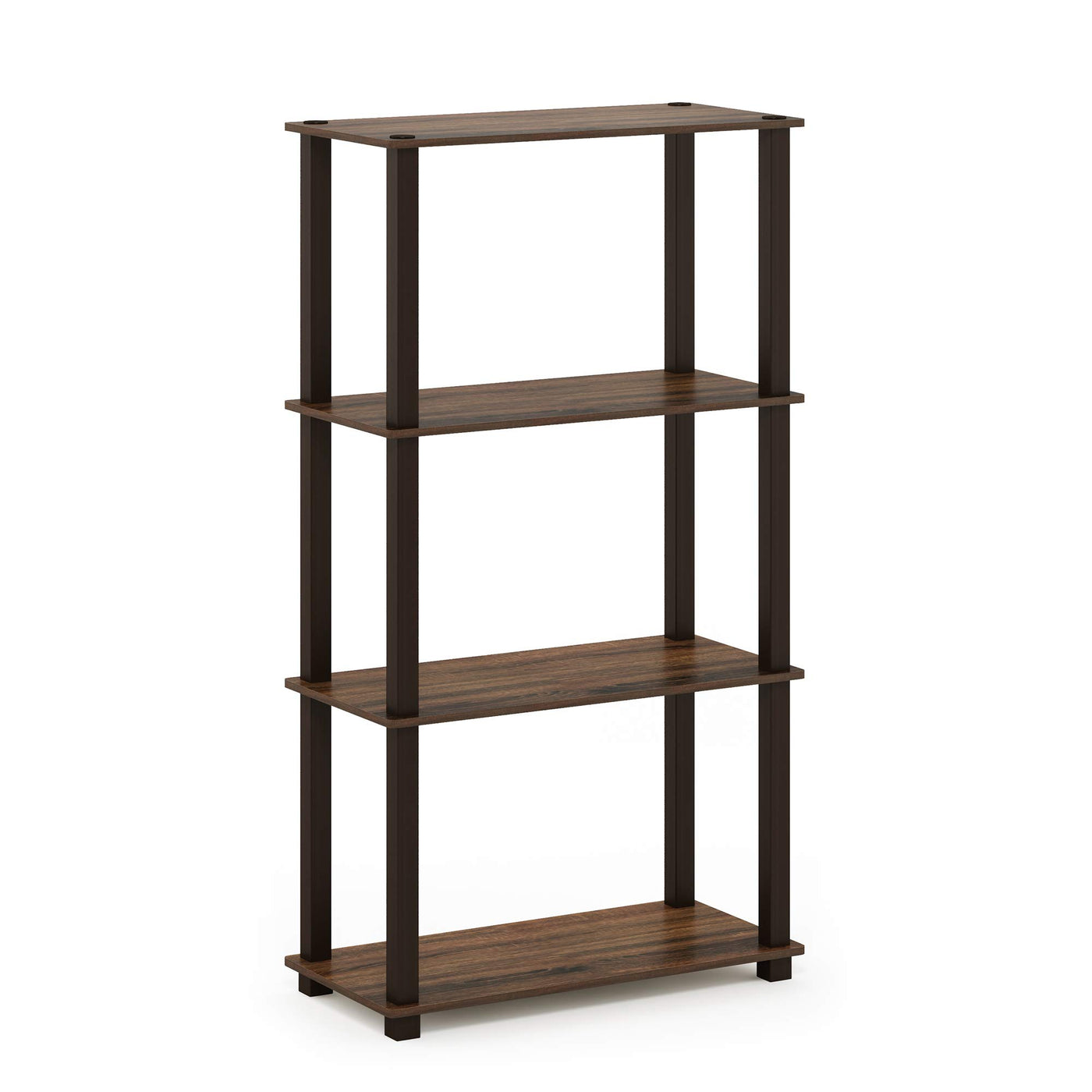 Furinno Turn-N-Tube 4-Tier Multipurpose Shelf Display Rack, Square Tube, Walnut/Brown