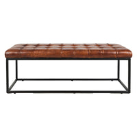 The Incredible Feel Of Genuine Leather Makes This Fully Assembled Industrial Style Ottoman The Perfect Addition To Your Decor. Taking Influence From Luxury Resorts Around The World, The Deep Richness Of The Leather Combined With The Strength Of Iron Creates An Unforgettable Combination That Is Sure To Make A Lasting Impression In Your Home. Measuring 50' Wide, This Beautiful Handcrafted Bench Looks Great At The Foot Of Your Bed, In A Hallway Or Can Be Used For Additional Seating In The Living Room. The Space Below The Bench Is Ideal For Storing Shoes Underneath, And The Distressed Natural Leather Brings Rugged Sophistication And Industrial Style To Any Room. Available In Both Dark Sienna And Saddle Colors.