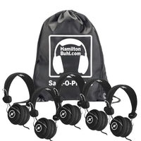 Hamiltonbuhl Sop-Fvblk Sack-O-Phonessack-O-Phones Is A Unique Storage And Carry Bag That Doubles As A Knapsack, And This One Holds 5 Black Favoritz Headsets With In-Line Microphone And 3.5Mm Trrs Plug. Each Headset Comes In Its Own Heavy-Duty, Anti-Lice, Write-On, Moisture-Resistant, Resealable Bag.Cool For School Favoritz Headsets Have A Sleek Appearance And Offer A Rugged Durability For Everyday Use. Students Will Be Proud To Sport This Mid-Sized Headset To Use With Their Tablet, Computer, Mobile Device, Almost Anything.The Favoritz Series Features Compatibility With The Latest Technology By Including A Slim Barrel 3.5Mm Trrs Plug For Easier Audio-Jack Insertion Into Devices With Protective Covers, In-Line Microphone And The Exclusive Dura-Cord - The Kink And Chew-Resistant Cord.Sop-Fvblk Sack-O-Phones Includes:(5) Black Favoritz Headsets With In-Line Microphone (Fv-Blk)(1) Carry Bag (Sop)Compatible With:Mp3 Playerscell Phones / Mobile Devicestablets / Ereaderschromebookscomputers (Mac & Pc)Cd Players / Stereostvsmost Gaming Systemsheadset Specifications:Speaker Drivers: 40Mmimpedance: 32Sensitivity: 105Db4Dbfrequency Response: 50-20,000 Hzin-Line Microphonecord: 5' Dura-Cord - Chew-Resistant, Pvc-Jacketed, Braided Nylonstorage Bag: Heavy-Duty, Write-On, Moisture-Resistant, Reclosable Bag. Helps Prevent The Spread Of Lice!Slim Barrel, 120 3.5Mm Trrs Stereo Jack For Easier Audio-Jack Insertion Into Devices With Protective Coverscarry Bag Specifications:18' X 14'Draw String, Non-Woven Polypropylene Material