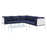 Harmony 6-Piece Sunbrella Outdoor Patio Aluminum Sectional Sofa Set White Navy