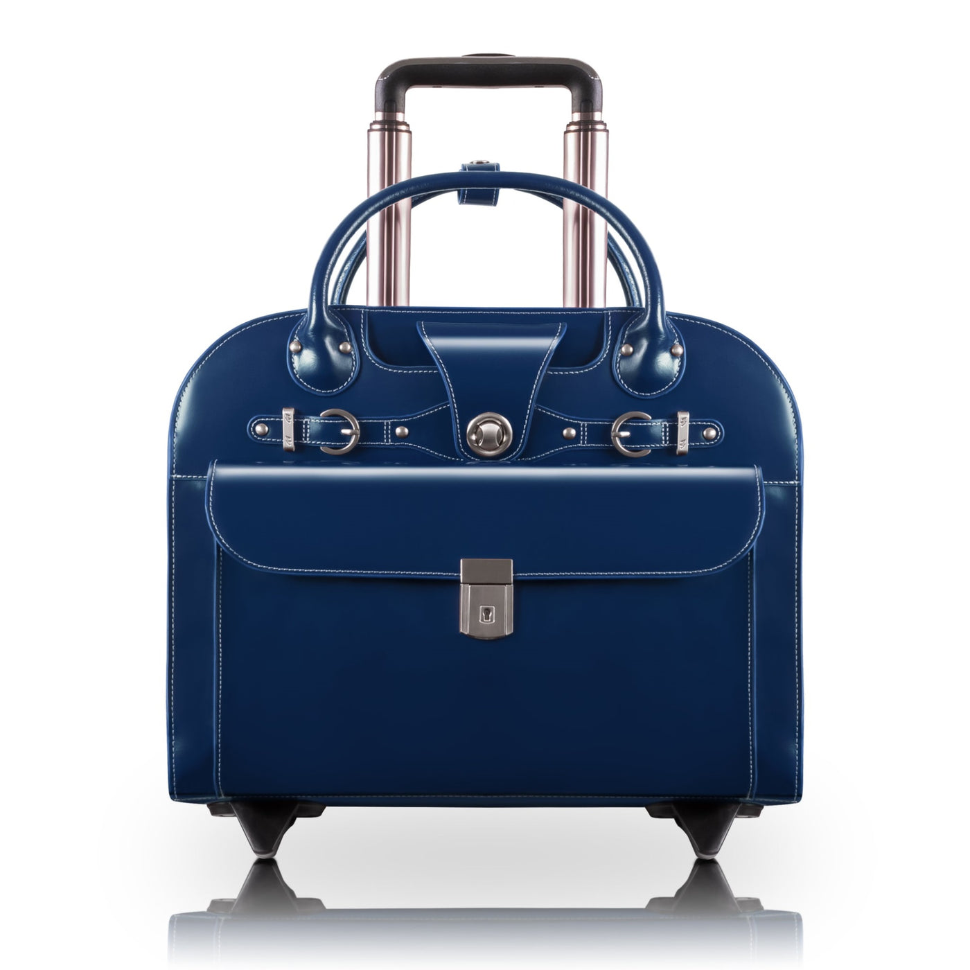L Series | Edgebrook | 15 Leather Wheeled Ladies' Laptop Briefcase - Navy