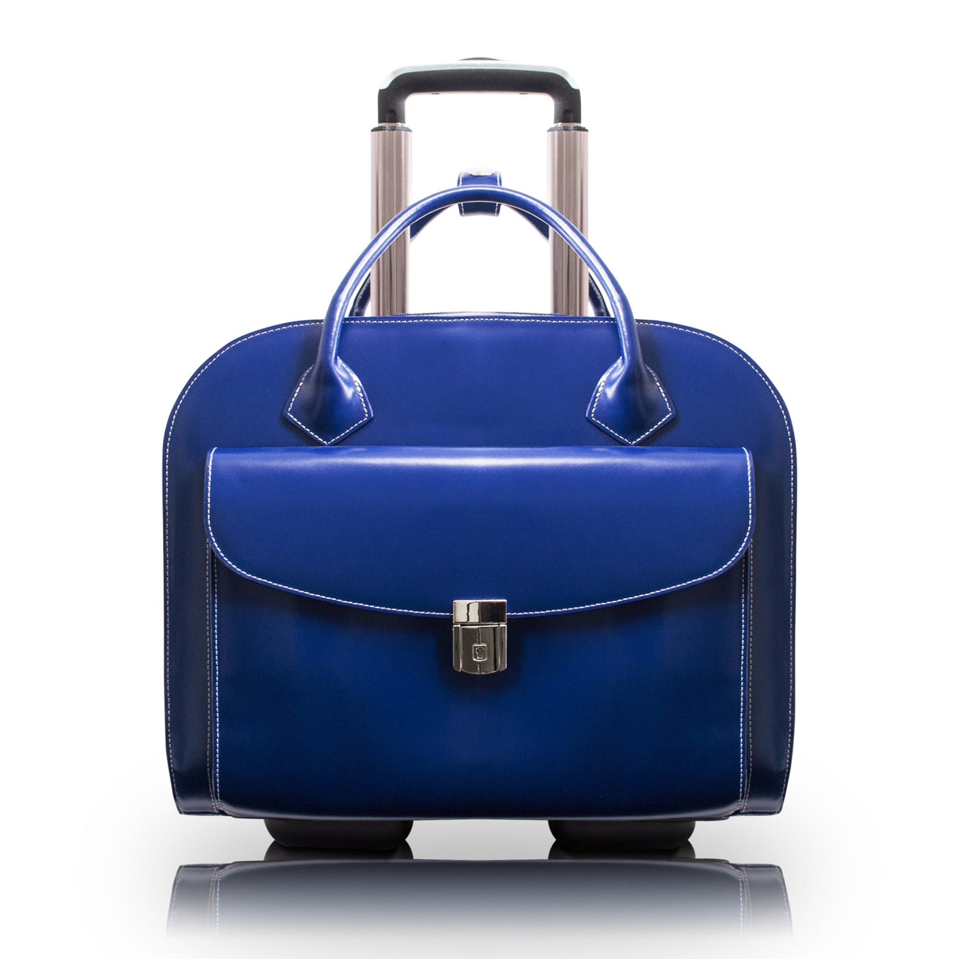 L Series | Granville | 15 Leather Wheeled Ladies' Laptop Briefcase - Navy