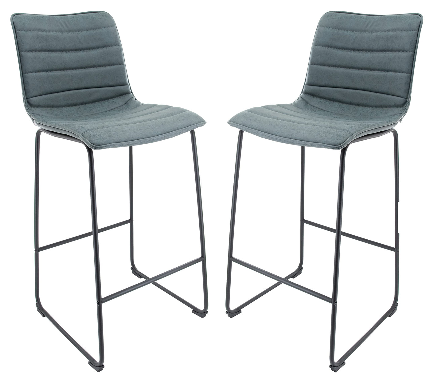 Leisuremod Brooklyn 29.9 Modern Leather Bar Stool Kitchen Island Stools With Black Iron Base & Footrest Set Of 2 (Peacock Blue)