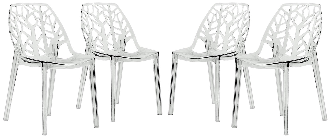 Leisuremod Cornelia Cut-Out Tree Design Modern Dining Chairs, Set Of 4 (Clear)