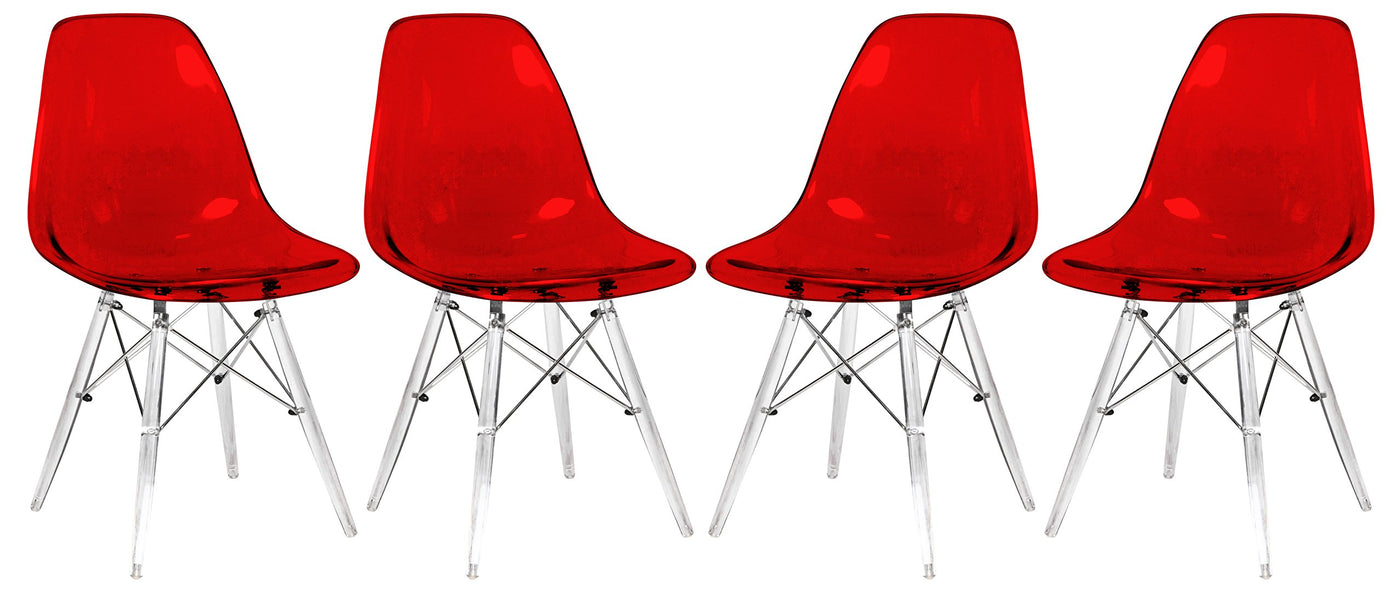 Leisuremod Dover Molded Side Chair With Acrylic Legs Set Of 4 Transparent Red