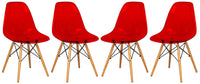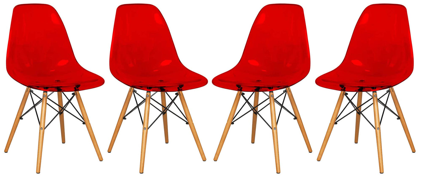 Leisuremod Dover Plastic Molded Dining Side Chair With Wood Dowel Legs Set Of 4 (Transparent Red)