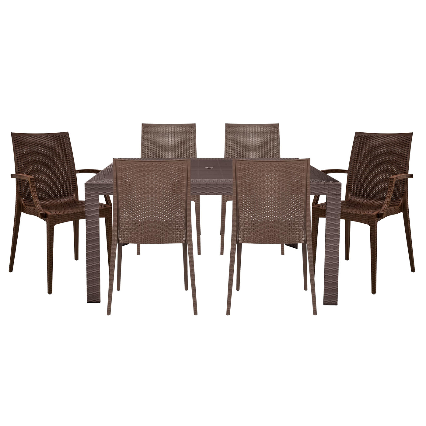 Leisuremod Mace Mid-Century 7-Piece Rectangular Outdoor Dining Set With 4 Side Chairs And 2 Armchairs