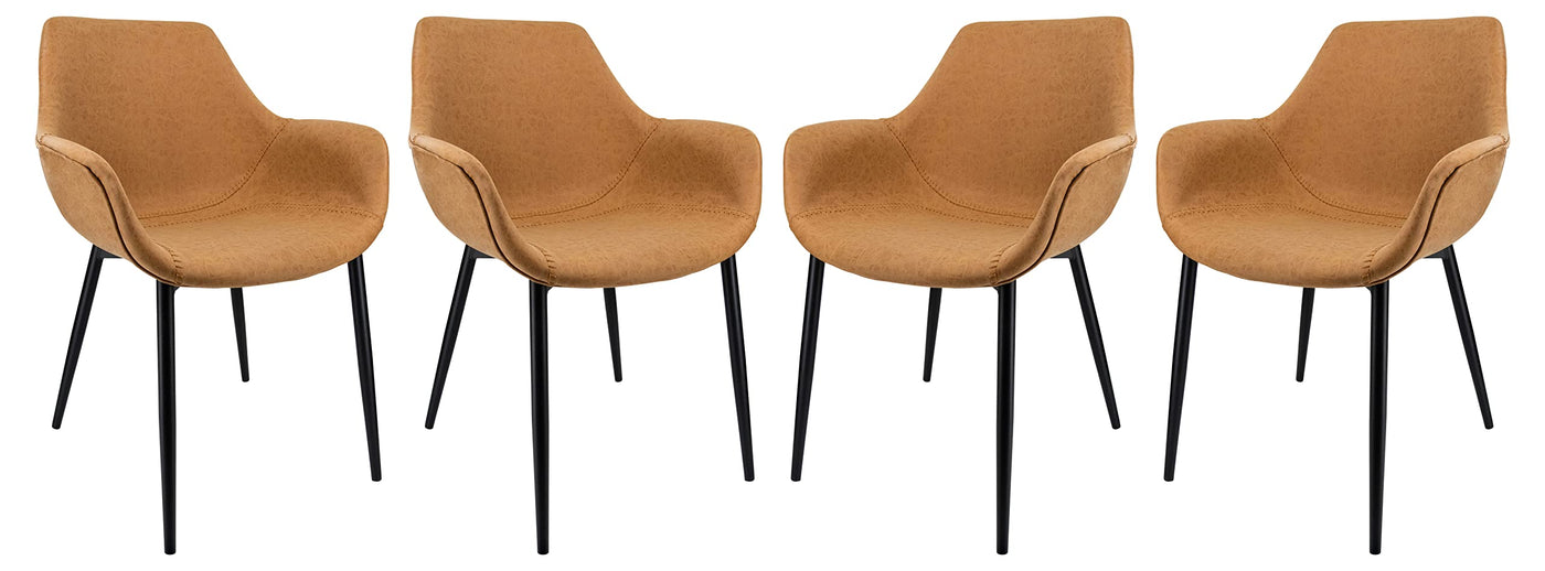 Leisuremod Markley Modern Leather Dining Armchair Kitchen Chairs With Metal Legs Set Of 4 Light Brown