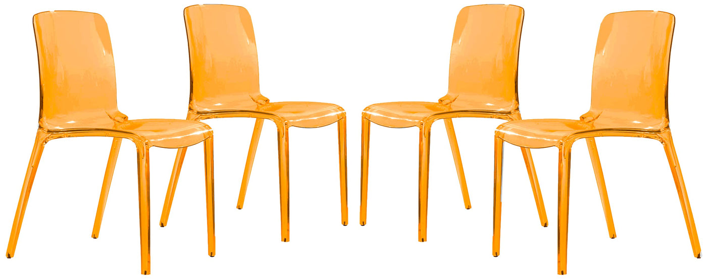 Leisuremod Murray Adler Mid-Century Modern Dining Side Chair Set Of 4 Transparent Orange