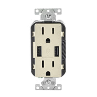 Leviton Decora 5-15R Outlet & Usb Charger 15A 125V Light Almond
