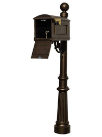 Lewiston Equine Mailbox Post System With Locking Insert, Fluted Base, Ball Finial (No Address Plates Or Numbers) , Bronze