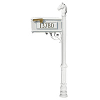Lewiston Equine Mailbox Post System With Ornate Base, Horsehead Finial, And 3 Cast Aluminum Personalized Address Plates , White