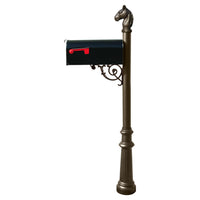 Lewiston Equine Post System With E1 Economy Mailbox, Mounting Plate, Fluted Base And Horsehead Finial , Bronze