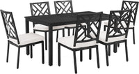 Locke 7 Piece Outdoor Dining Set Creme, Matte Black - Table & 6 Chairs