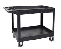 The Xlc11Sp5-B Two Shelf Heavy-Duty Utility Cart Is A Sturdy Cart Made Of High-Density Polyethylene (Hdpe), Known For Its Incredible Strength To Density Ratio. Hdpe Is A Highly Flexible, Resilient Material With Heat Resistance Up To Temperatures Of 180 Degrees, Making The Xlc11Sp5-B An Unyielding Cart That Is Built To Last. Both Light Weight And Sturdy, This Rolling Utility Cart Is Ideal For Restaurants, Garages, Offices, And Anywhere Durability And Strength Are Needed. 2.5 Deep-Lipped Shelves Keeep Items Secure, While An Ergonomically Molded Handle Includes A Cup Holder And A Small Compartment That Serves As A Space For Screws, Small Tools, Or Other Materials, The Xlc11Sp5-B Comes With 5 Heavy Duty Semi-Pneumatic Casters The Heavy-Duty Utility Cart Can Support Up To 500 Pounds And Is Built To Smoothly Transport Heavy Loads. Made From 100 Percent Recycled Plastic. Shelves And Legs Are Scratch, Stain, Rust And Dent Resistent. Legs Are Constructed As Corner Pieces Rather Than Hollow Legs, Creating Maximum Shelf Space. Dimensions Are 45.5L X 24.5W X 33H . Assembly Required.