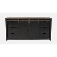 Experience The Elegance Of Rustic Farmhouse Craftsmanship With The Madison County Collection. Made From Solid Reclaimed Pine, Each Piece Showcases The Natural Beauty Of The Wood Through Unique Weathering And Intentional Stress Markings. Upgrade Your Dining Room Or Hallway With The Comfortable And Sophisticated Style Of This 70' Barn Door Server. With Six Drawers And Two Full Size Rolling Barn Doors, This Is The Perfect Centerpiece For Your Home.