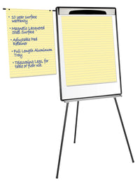 Magnetic Steel Dry-Erase Tripod Presentation Easel With Extension Arms, Black And Silver Aluminum Frame, 29.5 X 42