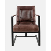 Genuine Leather Over A Sleek, Modern Frame Make This Sled Style Chair A Sophisticated Addition To Your Home. The Squared Metal Frame Accentuates Any Home Decor, And The Natural Beauty Of The Leather And Craftsmanship That Goes Into Every Chair Is Undeniable. Measuring 35.5'' Tall And Featuring Additional Leather Accents On The Armrests, The Soft And Lush Padding In The Seat Makes A Luxurious Feel That Only Genuine Leather Can Provide. Available In Saddle And Dark Sienna Leather Finishes.