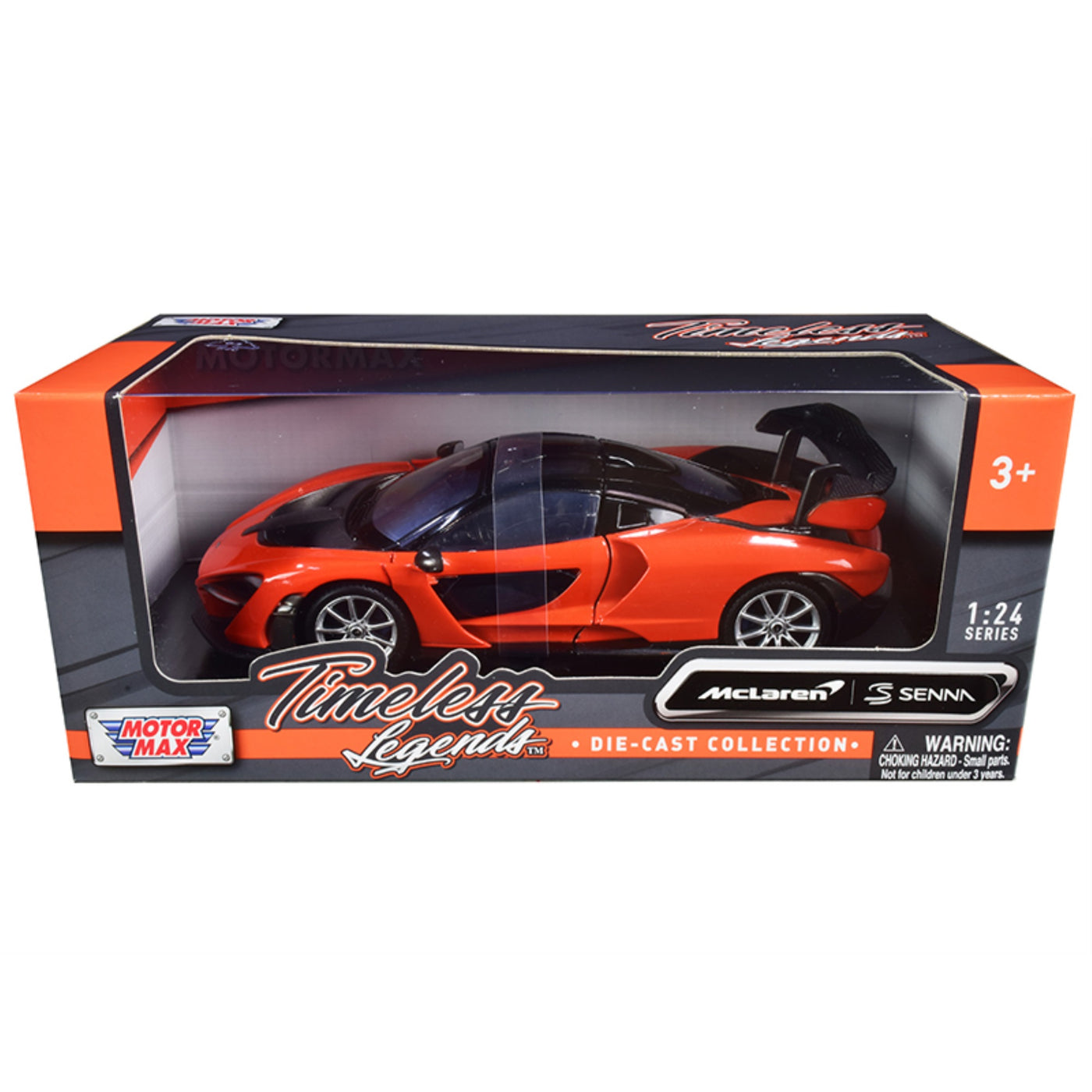 Mclaren Senna Orange Metallic And Black 'Timeless Legends' 1/24 Diecast Model Car By Motormax