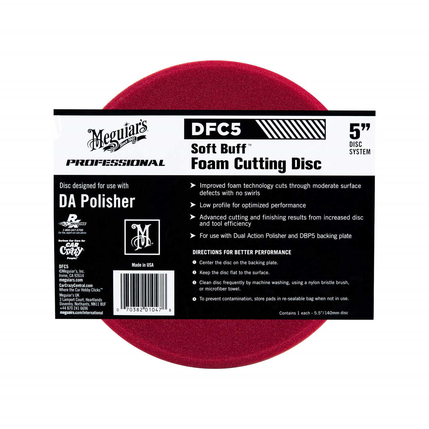 With Improved Foam Technology, Meguiars 5' Soft Buff Da Foam Cutting Disc Cuts Through Moderate Surface Defects Without Creating Swirls. The Innovative Low-Profile Pads Provide Increased Disc And Tool Efficiency, Giving You Optimized Performance And Delivering Advanced Cutting And Finishing Results. The Hook And Loop System Keeps The Cutting Disc Firmly Attached To The Backing Plate At All Times. Designed To Be Used With Meguiars Dual Action Polisher Mt300 And 5' Soft Buff Da Backing Plate Dbp5. Machine Washable And Reusable.