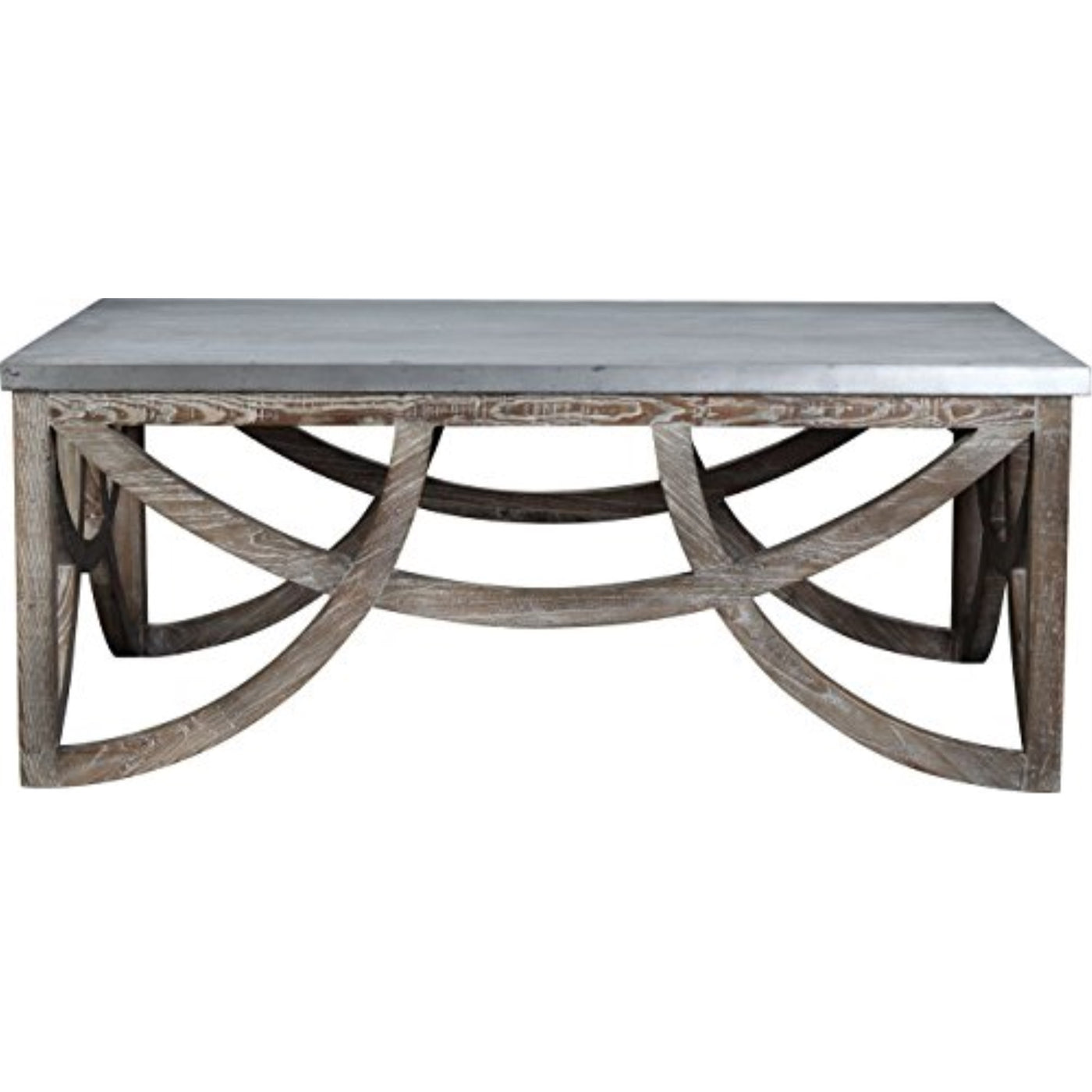 17211 (Mh) Aimee Coffee Table, White-Wash, Rustic Industrial Designs, Like The Aimee Coffee Table, Combine Two Enduring Aesthetics Into One Seamless Piece Of Furniture. This Coffee Table Is Crafted Of Mixed Materials In A Light White Wash Finish. The Top Is Made From Distressed Zinc While The Base Uses Reclaimed Pine Wood. The Open, Crisscross Circle Design Of The Legs Creates A Visual Treat That Grabs The Eyes. Center It In Your Living Room On Its Own Or Pair It With Your Favorite Decor.