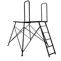 Product Specs Construction: Heavy-Duty Powder-Coated Steel Ladder: 15' Wide, Handrail For Support, Non-Slip Steps Landing: Non-Slip, Spacious For Easy Entry Into Blind Stakes