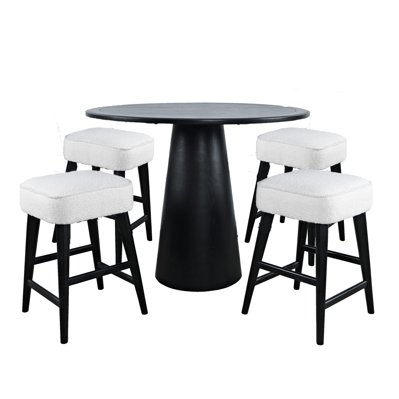 Enhance Your Dining Area With The Nash Mid-Century Modern Five Piece Counter Height Dining Set, Complete With Four Upholstered Backless Stools. The Centerpiece Of This Set Is The Nash Round 45' Counter Height Dining Table, Standing At 36' Tall And Featuring A Sleek, Tapered Base In A Rich Walnut Brown Finish. The Tables Minimalist Design And Curved Silhouette Blend Modern Elegance With Everyday Functionality, Perfect For Intimate Meals Or Entertaining Guests. The Backless Stools, Upholstered In Soft Ivory Boucle, Offer A Clean, Contemporary Look With Comfortable Seating. With Its Stylish Balance Of Form And Function, This Set Is Ideal For Any Modern Home.