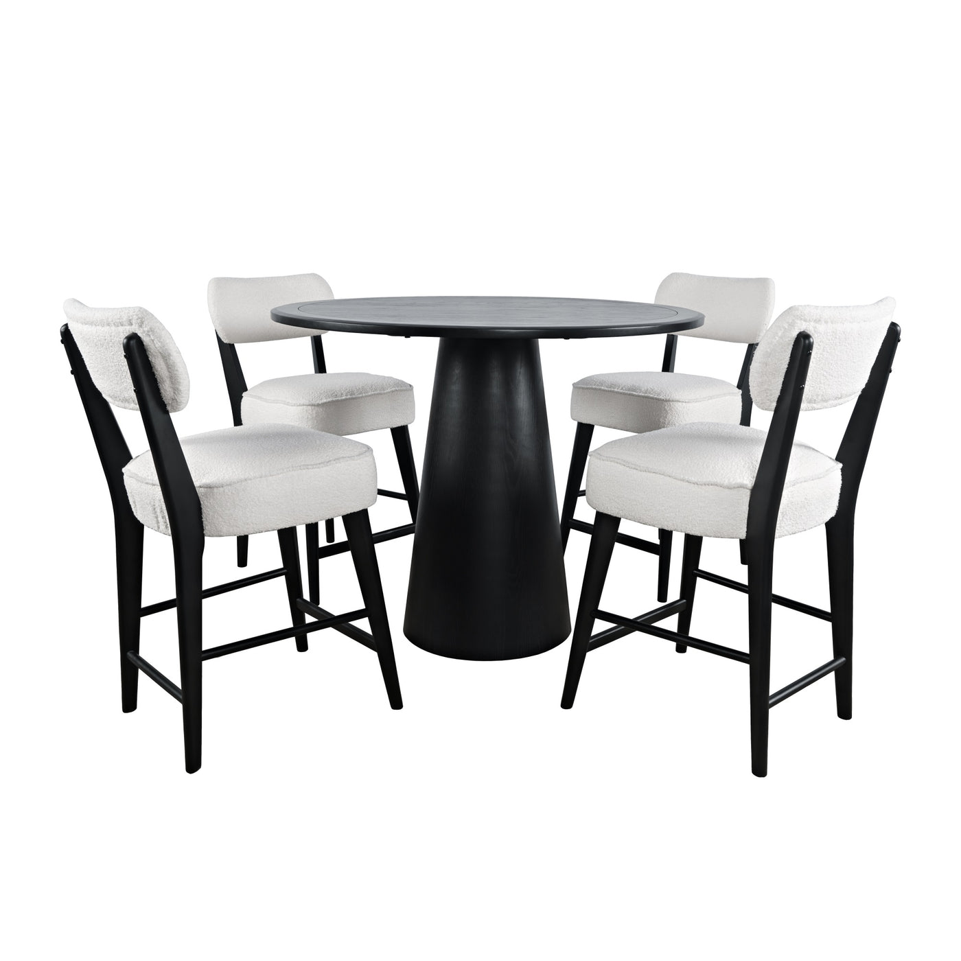 Elevate Your Dining Space With The Nash Mid-Century Modern Five Piece Counter Height Dining Set, Featuring Four Stylish Counter-Height Barstools. At The Center Of This Set Is The Nash Round 45' Counter Height Dining Table, Standing 36' Tall And Showcasing A Sleek Mid-Century Modern Tapered Base In A Rich Walnut Brown Finish. The Elegant, Curved Design Blends Modern Simplicity With Daily Functionality, Making It Perfect For Casual Meals Or Entertaining. The Barstools, Upholstered In Soft Ivory Boucle With A Sturdy Solid Wood Frame, Provide A Comfortable Yet Sophisticated Touch To Complete This Versatile And Timeless Dining Set.