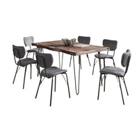 Experience The Stunning Beauty Of Natural Hardwood Acacia With The Nature'S Edge Seven Piece Solid Wood Dining Set. Crafted With Care, Each Table Showcases A Breathtaking 60 Inch Long Natural Live Edge, Highlighting The Curve Of The Wood Grain. The Accompanying Dining Chairs Boast A Chic Split Back Mid-Century Modern Design, Complementing The Table'S Style Flawlessly. Wrapped In Sumptuous Faux Leather Upholstery, The Chairs Provide Comfort And Sophistication In Every Sitting. Whether Hosting Intimate Gatherings Or Grand Feasts, This Dining Set Creates An Inviting Ambiance That Captivates Both Family And Guests. Elevate Your Dining Space With The Timeless Appeal Of The Nature'S Edge Collection.