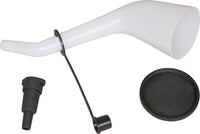 Offset Spout For Hard-To-Reach Applications Like Adding Brake Fluid To Master Cylinders, Gear Lube To Differentials, Fluid To Def Reservoirs, And More 10 Tall Translucent Funnel With A 6-3/4 Offset From Center Of Mouth To Center Of Spout Includes Lid And Spout Cap To Keep Contaminant Free Adapter For Transmission And Other Dipstick Tubes