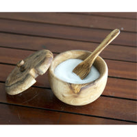 Olive Wood Honey Pot Jar With Dipper Stick Spoon