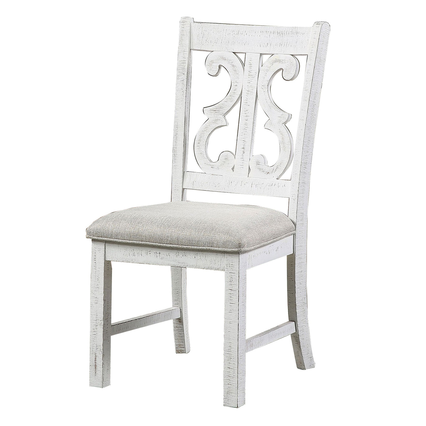Open Scroll Back Wooden Side Chair With Padded Seat, Set Of 2, White