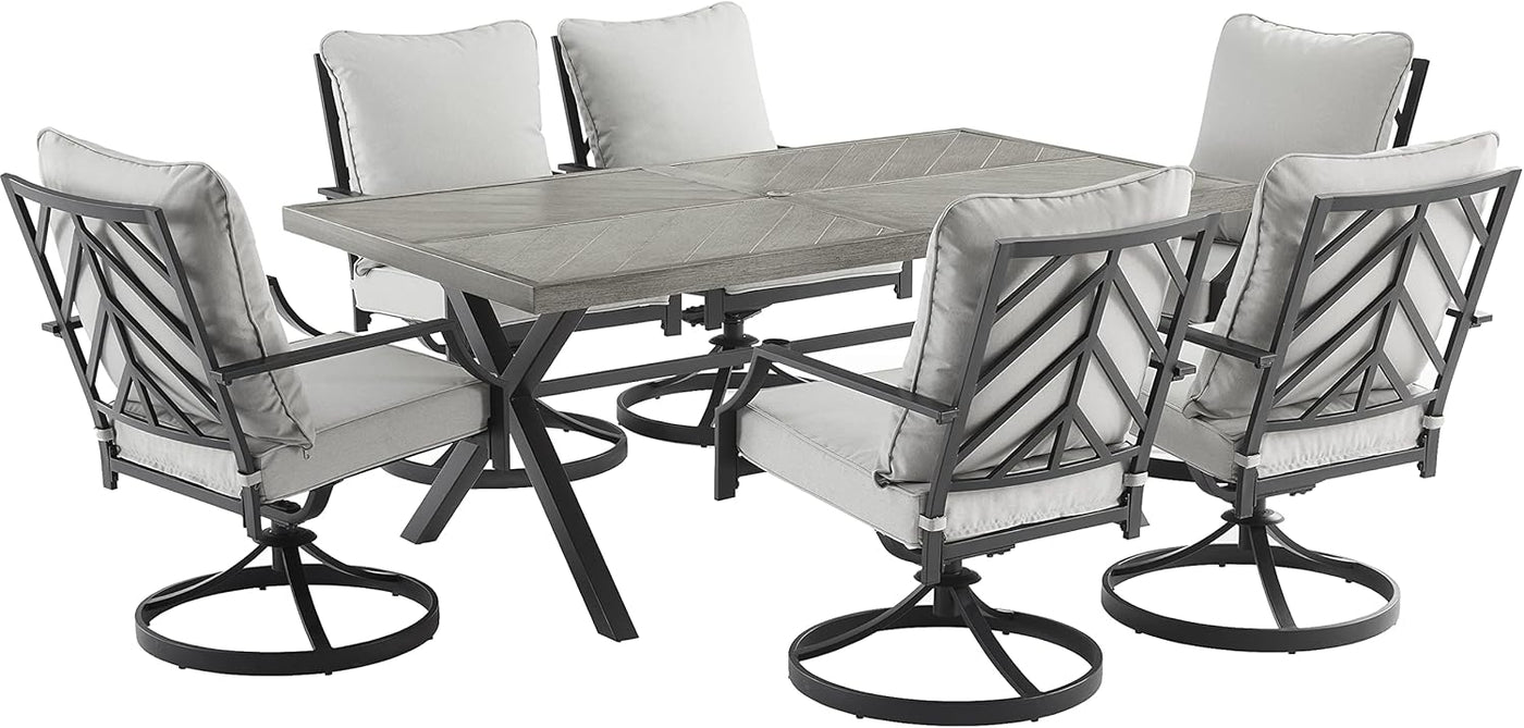 Otto 7 Piece Outdoor Dining Set Gray, Matte Black - Table & 6 Swivel Chairs
