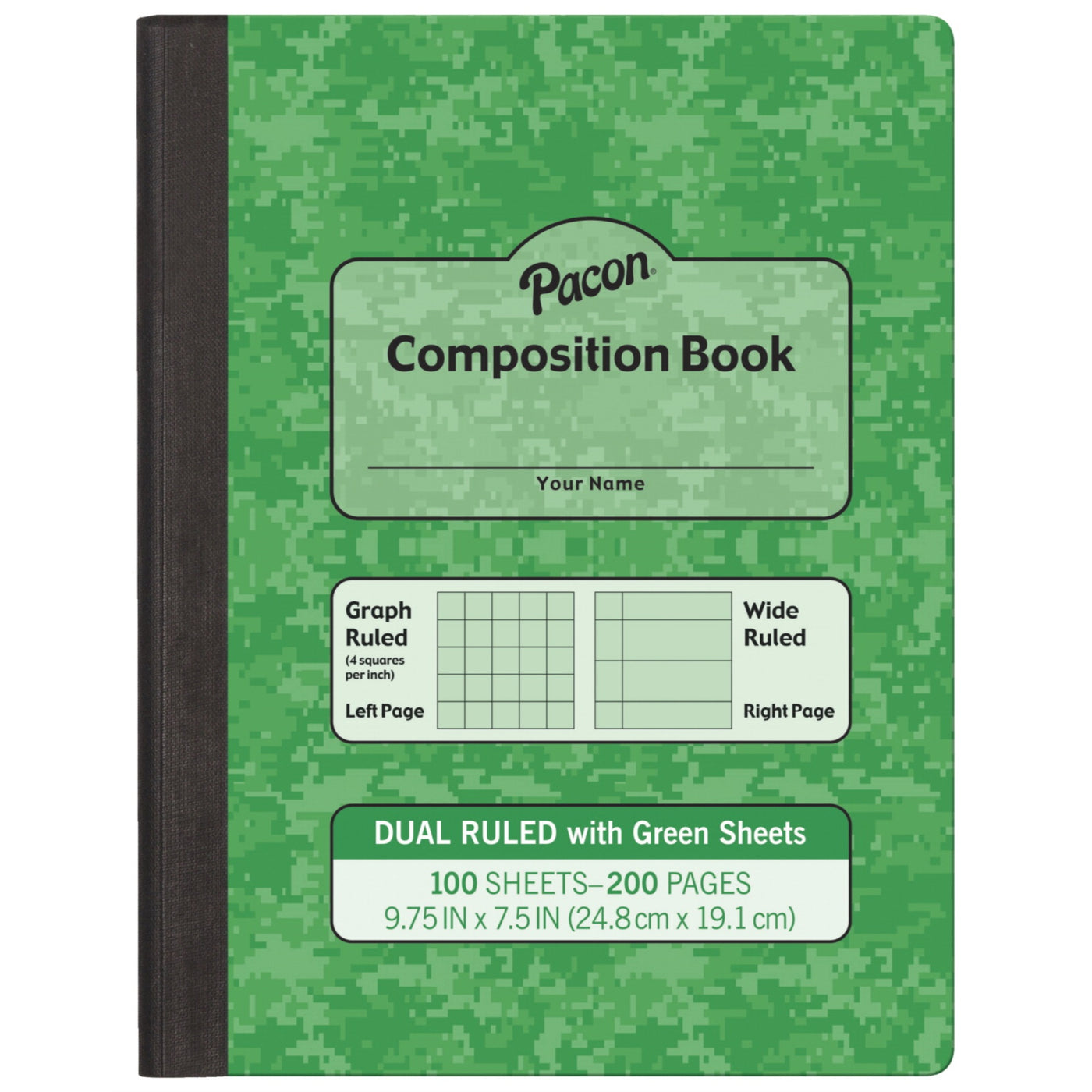 Pacon Dual Ruled Composition Book, Light Green, 9-3/4 X 7-1/2 Inches, 100 Sheets