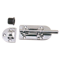 Perko'S Barrel Bolt 4-5/16 X 1-7/16 Chrome-Plated Bronze Body And Keeper. 3/8 Diameter Bolt. Includes High Impact Black Nylon Bulkhead Keeper. Keeper Easily Installs In A 5/8 Hole. Supplied With Friction Pad To Eliminate Rattle And Provide Smooth Operations.