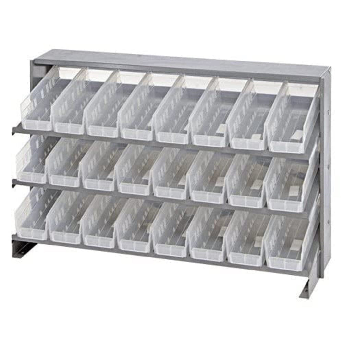 Quantum Qprha-101Cl Pick Rack, 12-1/2L X 36W X 23H, 250 Lbs Capacity, Carbon Steel, Gray With Clear Bins