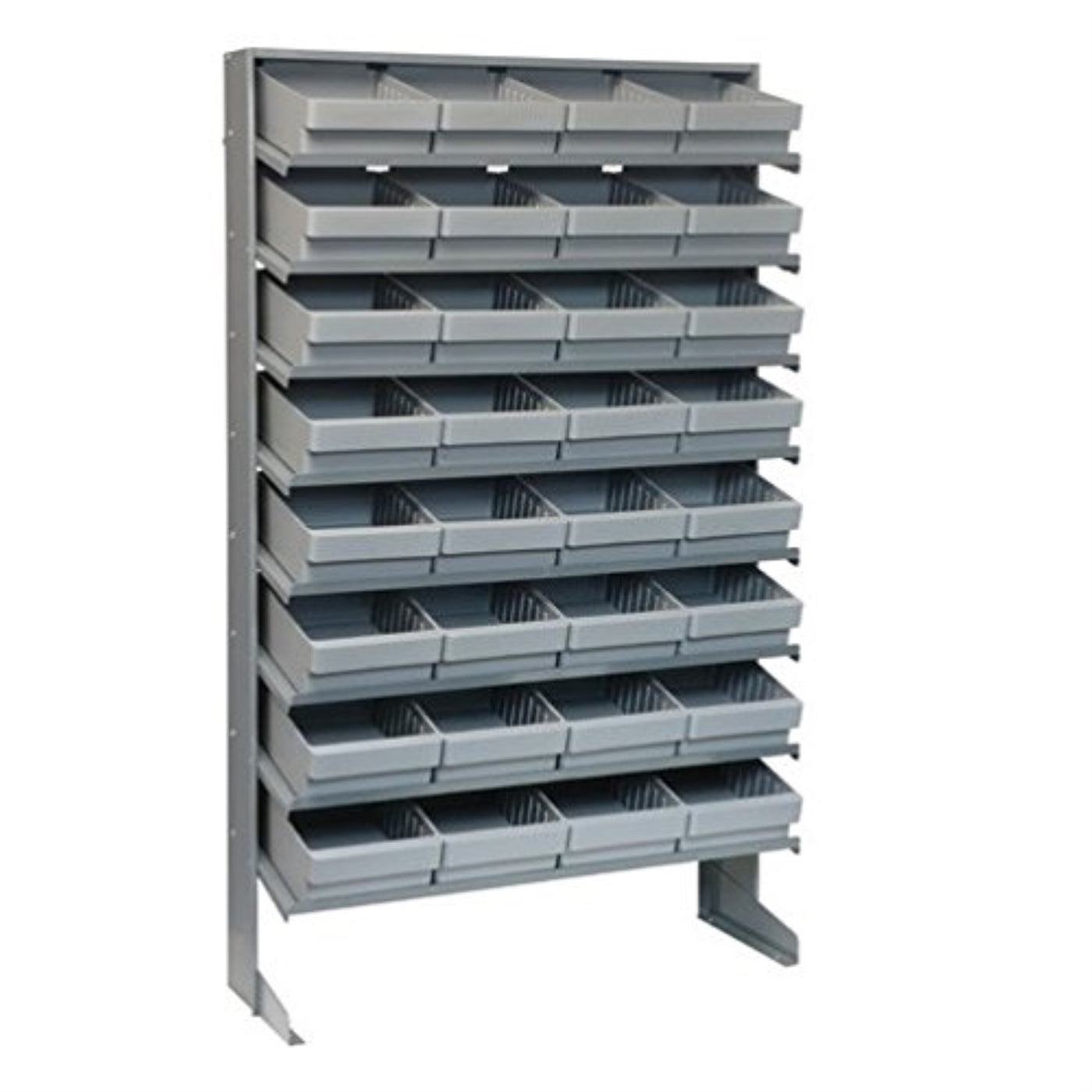 Pick Rack, Slopped, Single Sided, 12D X 36W X 63-1/2H, 400 Lbs. Capacity, Includes: (8) Shelves And (32) Qed701 Gray Bins, Galva