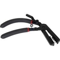 Cross-Cut Tip Design Grips From Multiple Angles Ratcheting Lock Mechanism Allows For Hands-Free Use Dual Material Grips For Comfort Works On Most Spring Hose Clamps