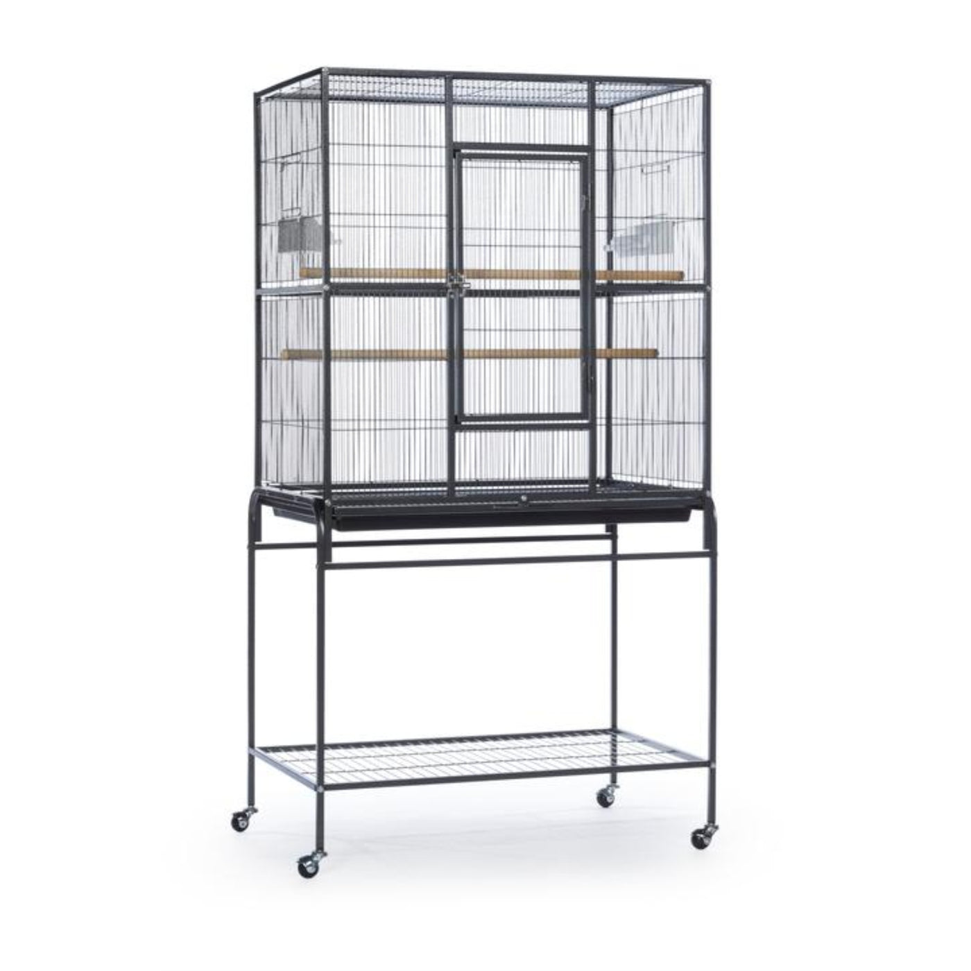Prevue Pet Products Powder-Coated Steel Construction Flight Cage With Stand Black Hammertone F046 Makes The Perfect Home For Multiple Parakeets, Canaries Or Finches. Ergonomically Designed To Feature One Large Front Door Plus A Bottom Shelf For Additional Storage Space, This Flight Cage Stands On Easy Rolling Casters And Is Easily Moved From Room To Room. Two Plastic Double Cups And Two Wood Perches Are Included In This Economical Large Cage. Finished With A Durable And Non-Toxic Powder Coating, Prevue Cages Undergo Independent Lab Testing And Conform To The Highest Levels Of Pet Safety. Our Powder-Coated Steel Construction Flight Cage With Stand Inblack Hammertone Measures 31&Rsquo;&Rsquo; Long, 20 &Frac12;&Rsquo;&Rsquo; Wide And 59 &Frac14;&Rsquo;&Rsquo; High With &Frac12;&Rsquo;&Rsquo; Wire Spacing.