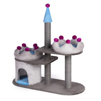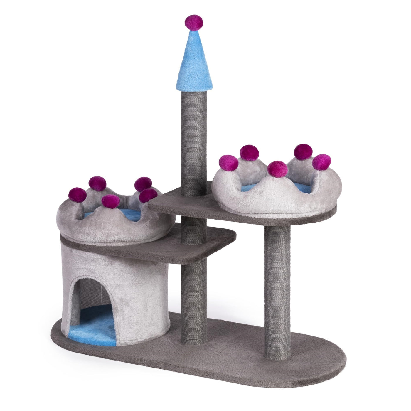 A Comfortable Cat Castle Fit For Feline Royalty! Prevue Hendryx King'S Castle Is A Velvet Soft Multi-Purpose Cat Tower With Shades Of Blue, Gray And Fuchsia That Adds And Elegance And Grace To Any Room In The House. The Unit Features Two Ultra-Soft Pillow With Plush Bumpers And Pom-Poms For Your Cat To Lounge And Relax As Well As An Interior Hideaway With Cozy Breathable Fabrics That Your Cat Can Use To Escape The Noise And Craziness Of The Outside World. Durable Jute Rope Scratching Posts Feature An Enjoyable Texture That Helps To Strengthen Claws, Trim Nails And Prevent Destructive Scratching Behaviors That Can Ruin Expensive Furniture.