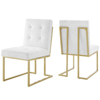 Maximize Your Dining Room Decor With Privy Dining Accent Chair Set Of 2. A Glam Deco Dining Chair Set, Privy Features Soft Polyester Fabric Upholstery For A Streamlined Modern Look. This Modern Dining Chair Rests Atop A Sleek Gold Stainless Steel Geometric Base That Will Elevate Your Dining Experience. No Assembly Required. Chair Weight Capacity: 331 Lbsset Includes:Two - Privy Gold Stainless Steel Dining Accent Chair