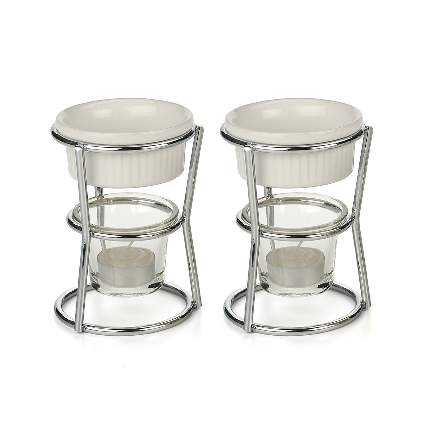 Rsvp Strives To Offer Quality Kitchen Products And Cooking Tools At Competitive Prices. Add A Touch Of Elegance To Your Next Dinner Party With This Rsvp Butter Warmer Set. Perfect For Individual Place Settings Or On A Buffet, The White Stoneware Cup Will Keep Your Butter Or Sauce Warm While A Small Tea Light Candle Burns Underneath. Featuring A Chromed Wire Frame With A Circular Base And A Stable Glass Candle Holder, It Matches Almost Any Decor. The Set Includes Two Stoneware Cups, Two Frames, Two Tea Light Candles, And Two Glass Candle Holders.