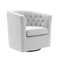 A Fresh Outlook On A Familiar Classic, The Prospect Performance Velvet Swivel Armchair Brings Intrinsic Luxury To Your Living Space. This Barrel Back Armchair Comes Upholstered In Stain-Resistant Performance Velvet Fabric And Boasts Tufted Accents, Updating The Rounded Profile With Retro Modern Design Elements. The Densely Padded Removable Seat And Backrest Grant Approachable Comfort That Beckons Guests To Sit And Stay A While. Solidly Constructed From Wood And Plywood, This Accent Chair Rests Securely On A Sturdy Swivel Base. Assembly Required. Maximum Weight Capacity: 300 Lbs.Set Includes:One - Prospect Tufted Swivel Armchair