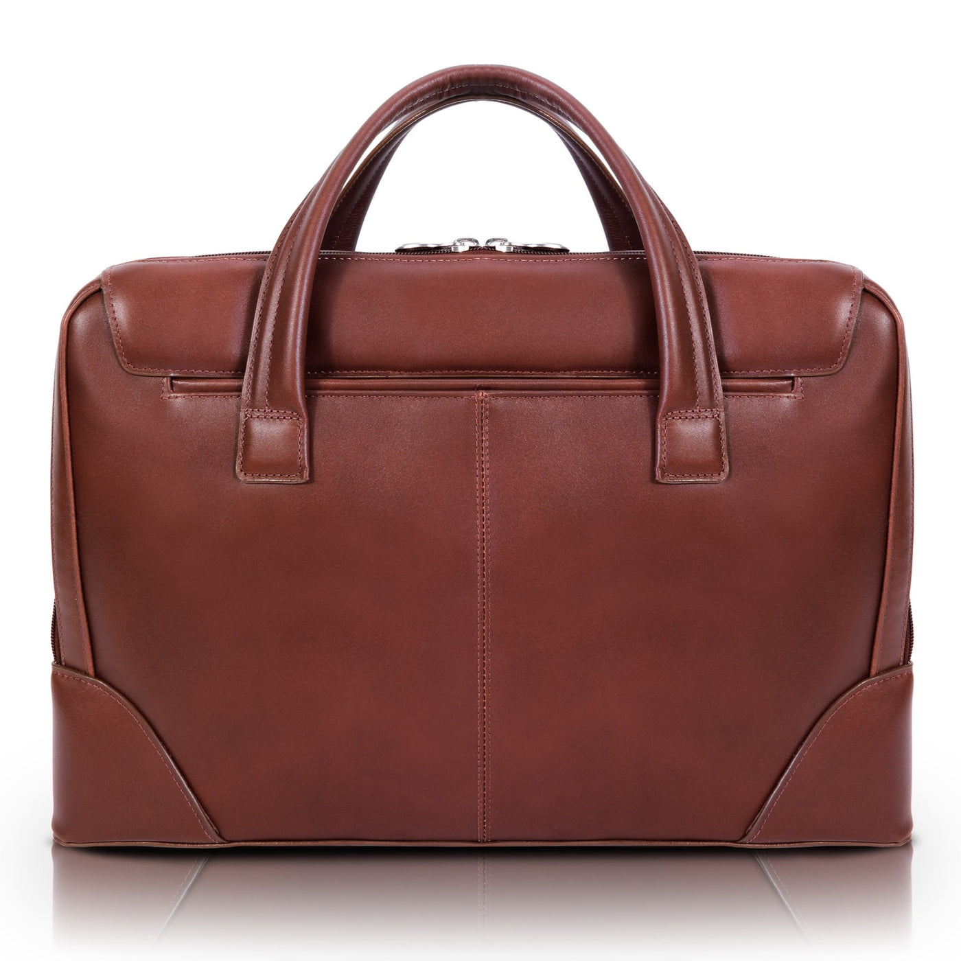 Structured Leather Briefcase With Dual Handle. Easy Access Front Pocket And Back Slip Pocket. Fully-Lined Interior With Leather Trim And Silver Accent Hardware. Front Compartment Features Two Pockets And Secure Zipper Pocket. Back Compartment Features Built-In Laptop Protection And Tablet Pocket With Organizer For Business Cards, Pens, And Accessories. Leather Smart Strap For Piggy-Backing Onto Rolling Cases. Removable And Adjustable Nylon Strap With Leather Shoulder Pad.