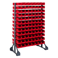 Rail Rack, Double Sided, 36L X 20W X 53H, 1500 Lbs Load Capacity, Includes: (12) Rails And (192) Qus220 Red Bins, Galvanized Ste