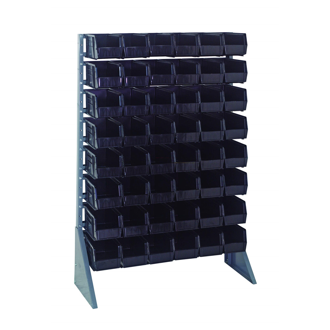 Rail Rack, Single Sided, 36L X 15W X 53H, 600 Lbs Load Capacity, Includes: (16) Rails And (48) Qus230 Black Bins, Galvanized Ste