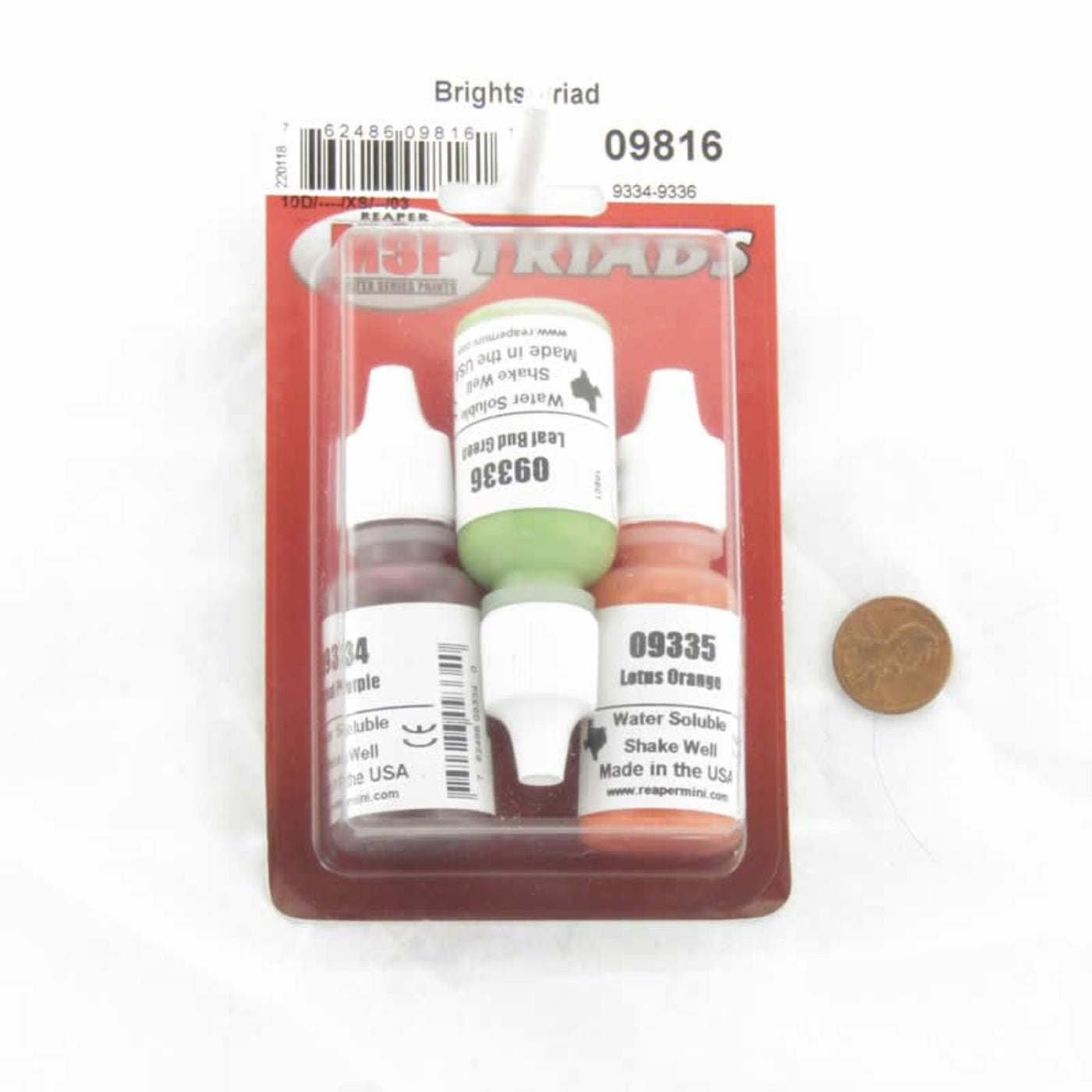 Rpr09816 Exotics Triad Acrylic Reaper Master Series Hobby Paint Dropper Bottles Reaper Miniatures Contains 3 - .5 Oz Paint Bottles.Paints Include- 09334 Orchid Purple- 09335 Lotus Orange- 09336 Leafbud Green Excellent For Thinned Paint Applications Like Layering, Washes And Glazes. Smooth And Fluid Right Out Of The Bottle Means Less Thinning Required. Enhanced Flow Properties Make Painting Small Details Easier. Sold In 1/2 Oz Dropper Bottles. Dries Matte. 100% Compatible With The Msp Hd Range. Airbrush-Friendly. Non-Toxic, Water Soluble. Note - Due To Differences In Monitors And Settings, Colors Represented May Not Precisely Reflect The Colors Sold. - Not For Children Under The Age Of 14 Years.
