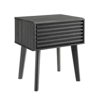 Tap Into Mid-Century Aesthetics With The Render End Table. This Living Room Side Table Features A Durable Particleboard Frame With Smooth Walnut Grain Laminate, Four Tapered Wood Legs, And A Full-Extension Glide Storage Drawer. Boasting A Mid-Century Modern Style This Accent Table Features A Solid Construction With A Pleasing Look And Practical Functionality. Set Includes: One - Render End Table Nightstand