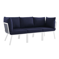 Riverside 3 Piece Outdoor Patio Aluminum Sectional Sofa Set White Navy